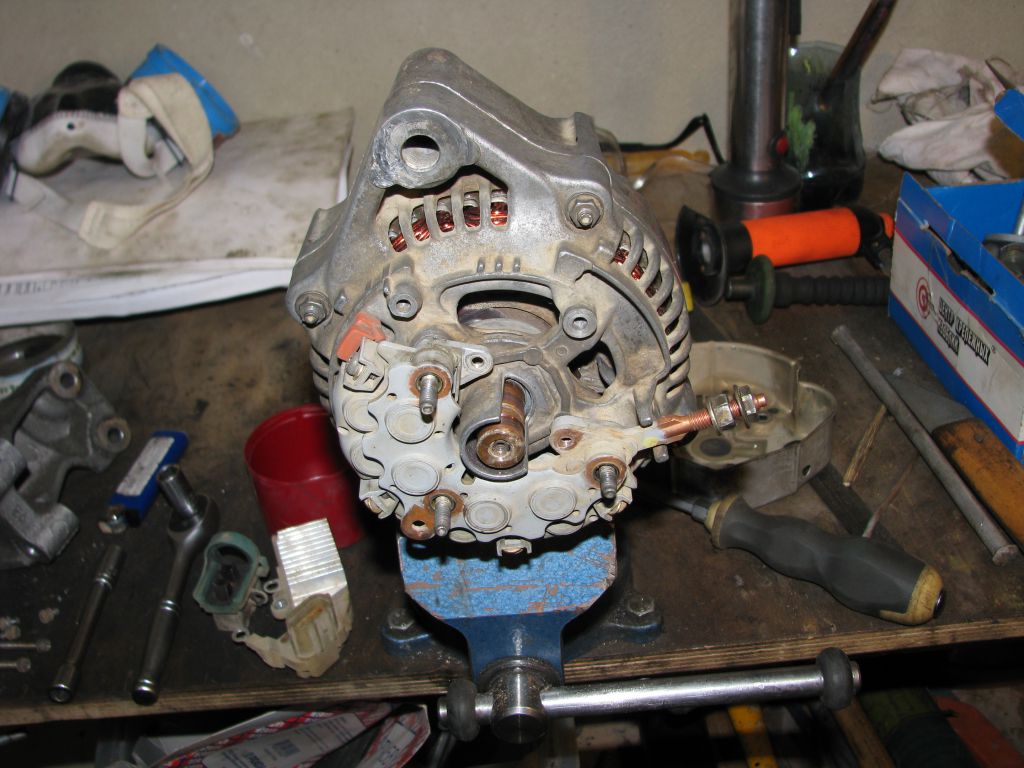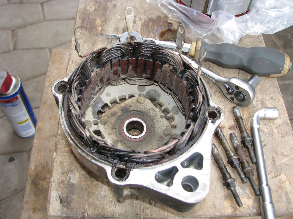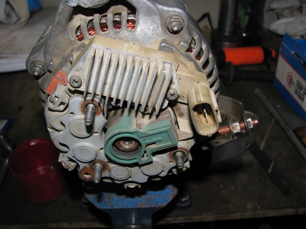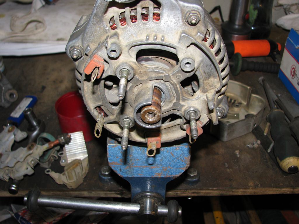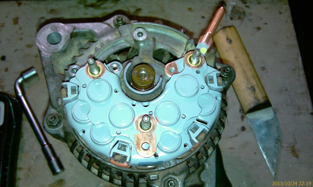 Снял крышку, открутил щетки и реле регулятор, отвернул четыре винта, на которых на обмотках закреплен диодный мост: