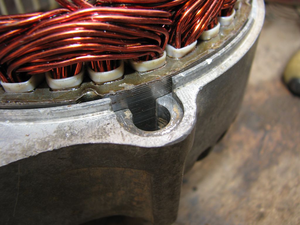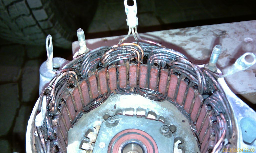 При сборке пришлось подгибать выводы обмотки статора. Они цеплялись за вентилятор ротора. Обмотки крупнее штатных и местами касаются корпуса. Я очень переживал, что собранный генератор не заработает. Но он заработал. Причем заработал как надо. Однако понятно, что место ему в ЗИПе.