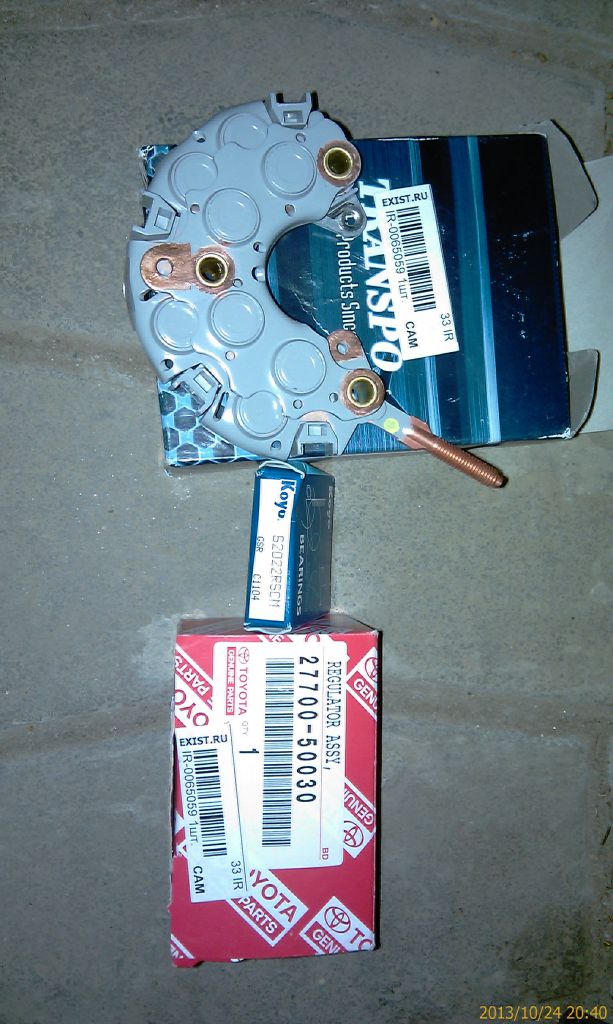 Известно, что сервисы, ремонтирующие генераторы и стартеры, активно используют неоригинальные запчасти и особо на них никто не жалуется. У Вити Walker’а в накладной на ремонт такого же генератора значилось некое изделие IN437. Экзист подсказал, что это Transpo IN437. Но с ним не кроссируются ни оригинал и его аналог производителя. Зато при новом посещении Экзиста он вдруг показал для моего регулятора заменитель Transpo IN453 за неполных 500р., который и был немедленно заказан вместе с оригинальными щетками. Позже были новые глюки с Экзистом, когда он то вообще не показывал замен, то показывал только фирменный аналог, то показывал неоригинальные заменилети.