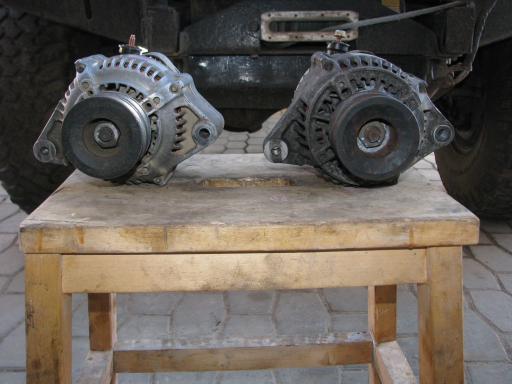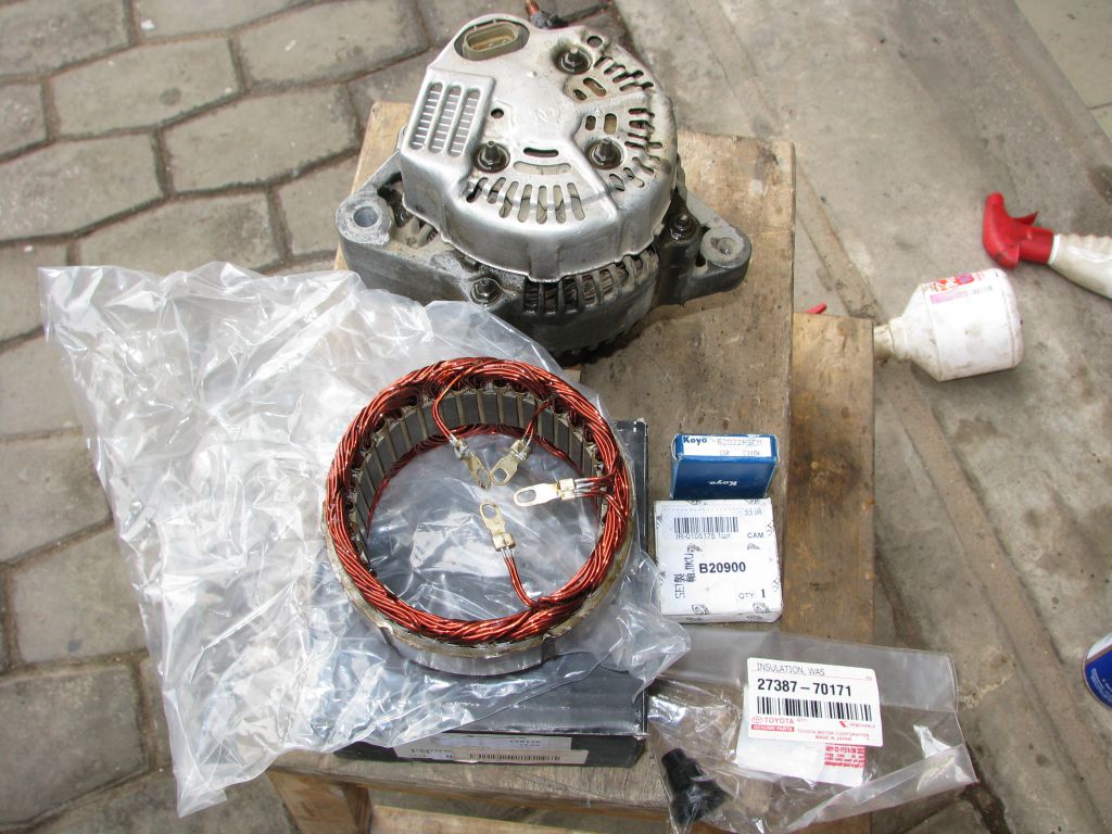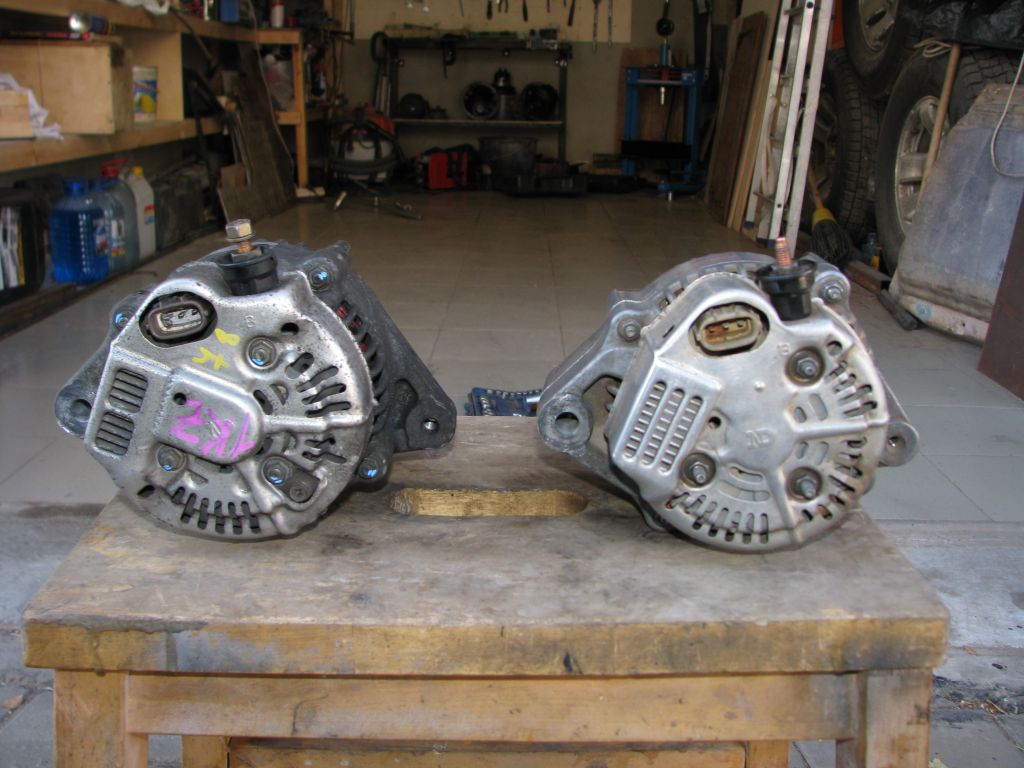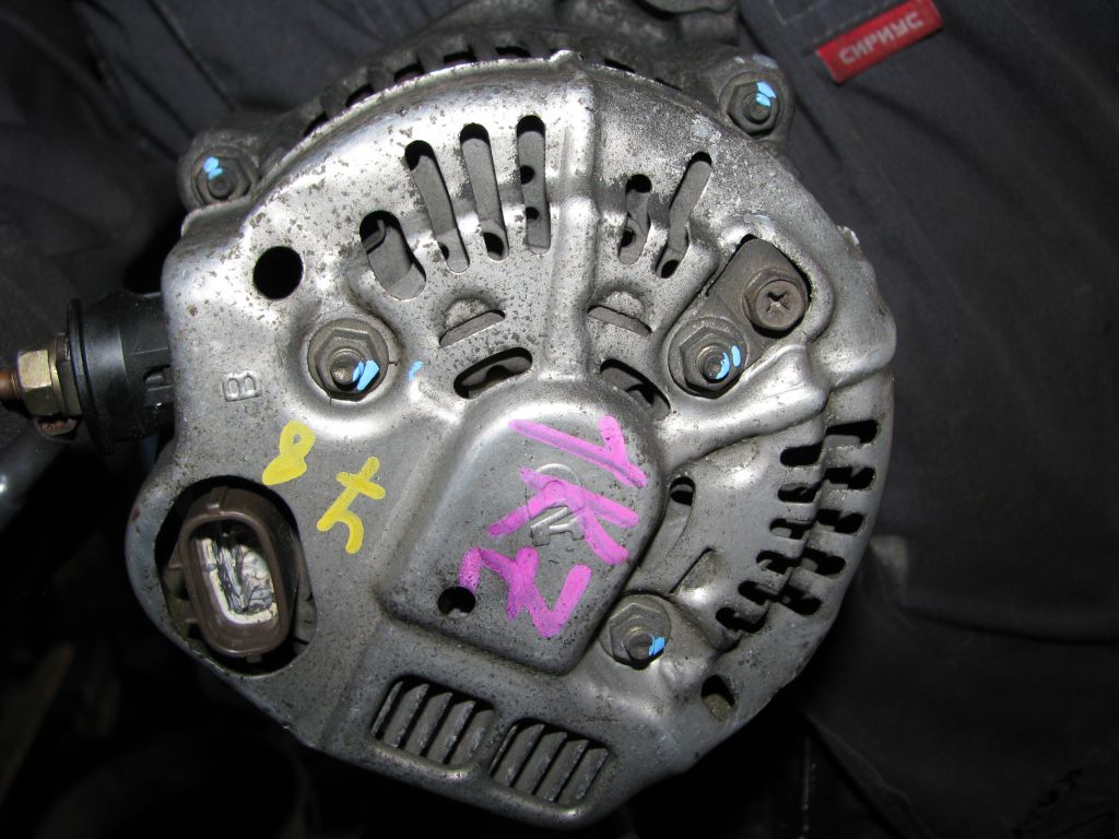 Через несколько дней после установки нового статора напряжение сильно просело. Со включенным светом только на 2000 об./мин. с трудом дотягивало до 13В. Поиски генератора на просторах бывшего СССР ни к чему хорошему не привели. Либо хлам, либо дорого, либо продавец не отвечает на требования предоставить подробные фотографии. Для успокоения совести заехал на разборку Импорт-Авто на Урожайной и сразу без труда откопал на ней для двигателя 1KZ три генератора на 70А и один 27060-67040 на 80А, который тут же и приобрел за 5 700 рублей: