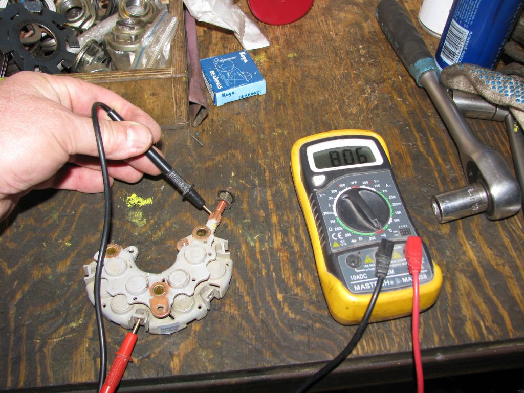Проверил состояние китайского диодного моста. С плюсового винта выходы на обмотки должны в одну сторону звониться, в другую - нет: