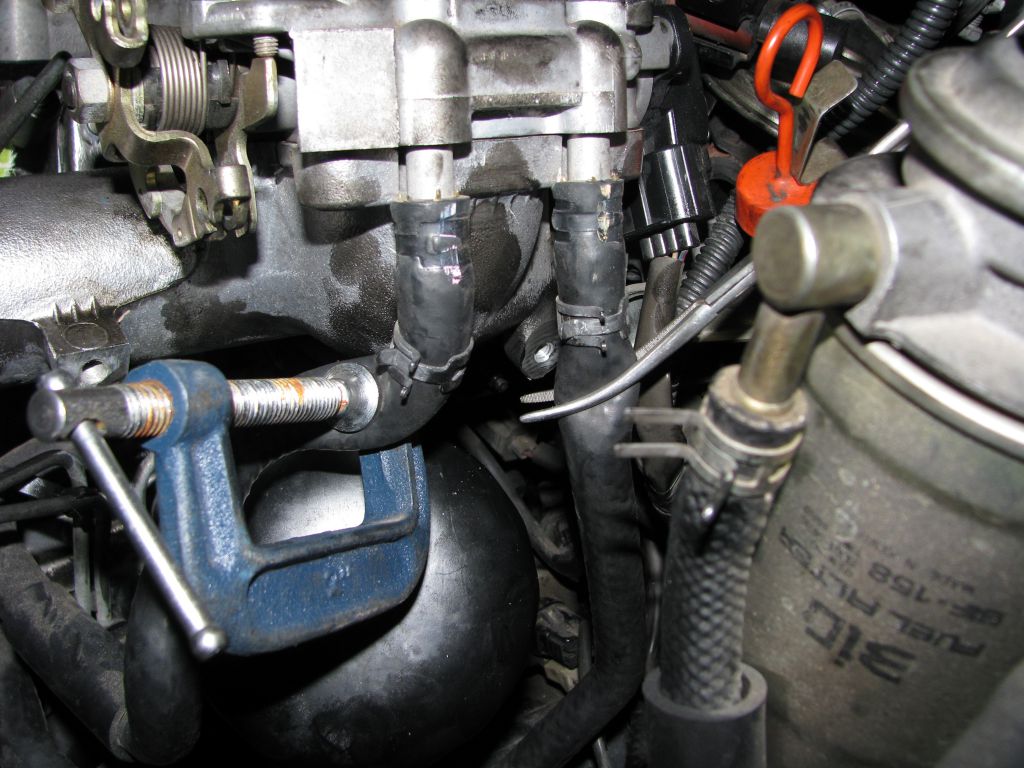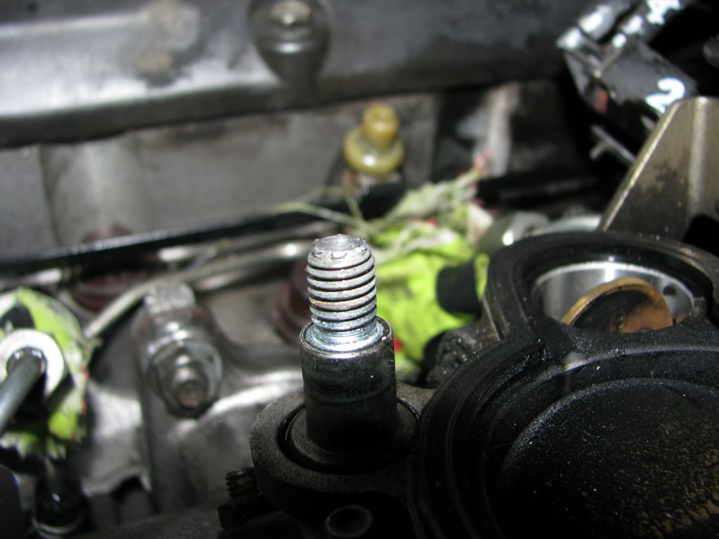 Пришлось демонтировать впускной патрубок вместе с заслонкой и выкручивать шпильку, зажав в тиски. Короче, под замену две шпильки 90109-08234. Пока соберу на обломках, позже заменю.