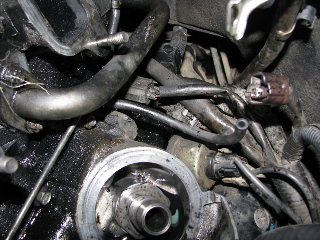 Отвязать бачок ГУРа, датчик с вакуумным фильтром (они мешают отворачивать первую нижнюю гайку патрубка):