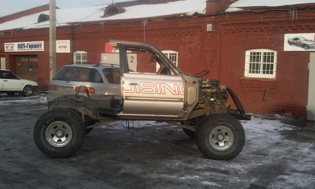 сильно обрезанная 80-ка с двигателем 1UZ (280 л.с. / 41 кг-2000 об) + автомат сочлененный с 4-х ступой мехой и раздаткой.
