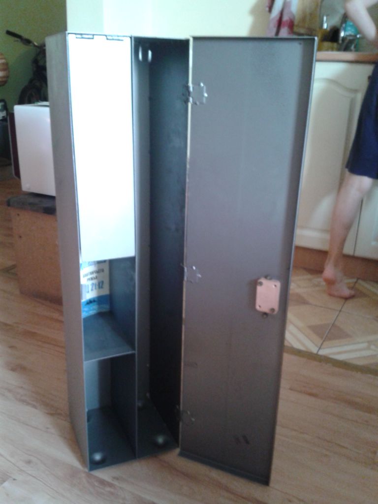 завтра вытащу с балкона сфотаю. Ростом чуть короче пнвморужжа совецкого. ГхШ примерно 300х300мм. Внутри отделение "под патроны", ну и замок от серванта :)
