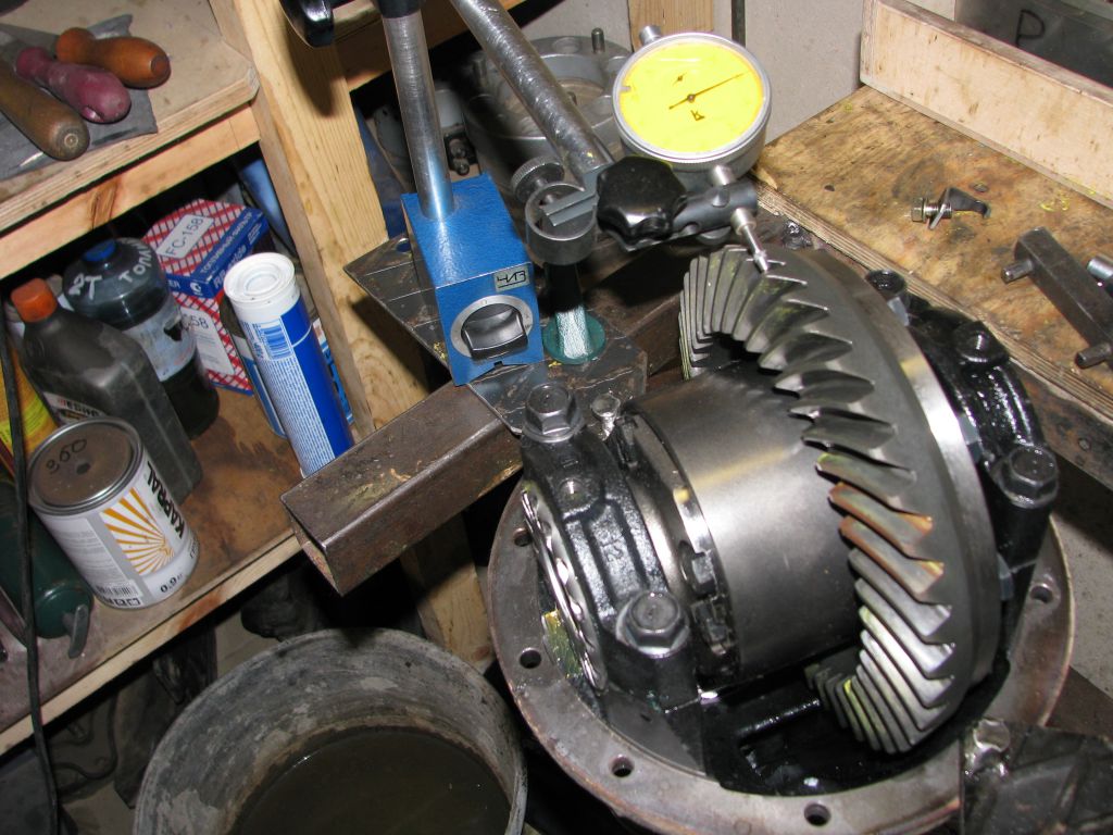 После протяжки «до дури» гайка со стороны ведущей шестерни отпускается, пока не пойдет легко. Потом устанавливается индикатор с упором в гайку со стороны ведомой шестерни: