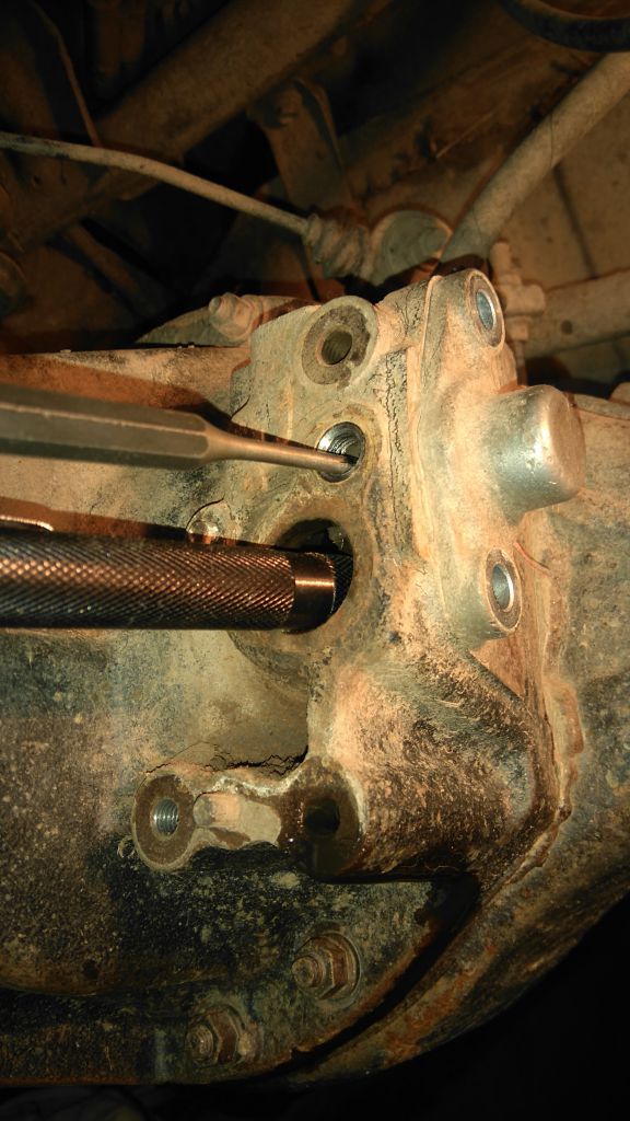 Поначалу выбивать штифт внутрь редуктора кажется самоубийством, поскольку штифт обязательно должен упасть внутрь редуктора. Но это не происходит, если его поймать магнитом через отверстие вала электропривода: