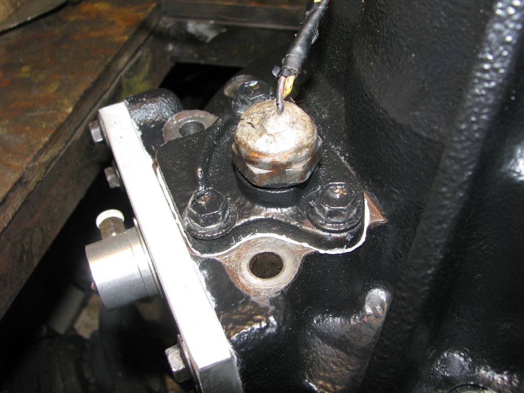 Пробка представляет собой конический пятак толщиной 4-5 мм. Сделана она не очень точно, забить её непросто. Она как неваляшка крутится на гнезде и в него не идет. В конце концов поддается и заходит. Я заглубил на 1 мм. На грани подмазал герметик.