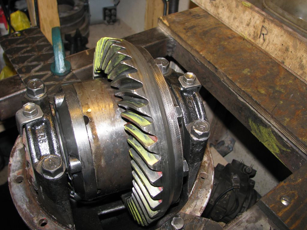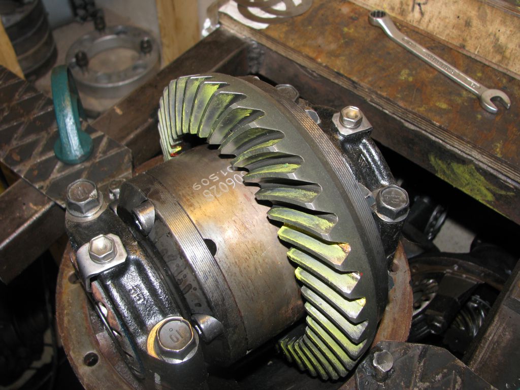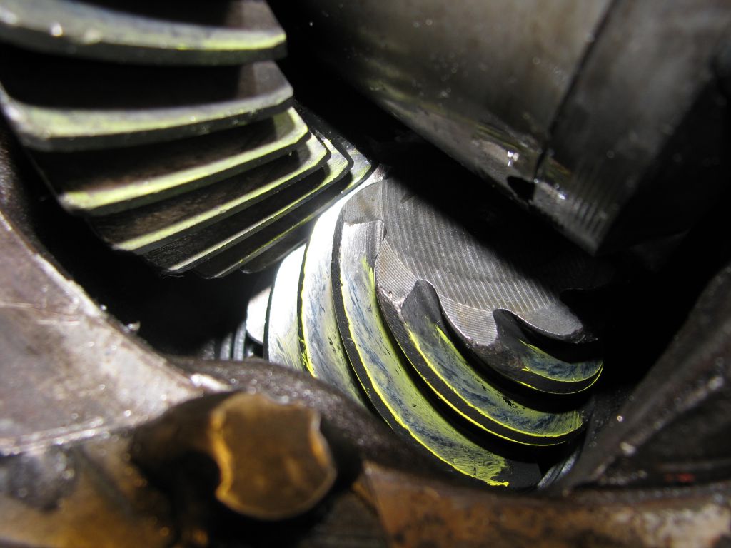 Собираю и заново регулирую со старой парой. Она тоже слегка побита и есть незначительные забоины. Надеюсь, что прикатаются. И надеюсь, что не появились трещины на зубьях. Пятно стало похуже, чем было: