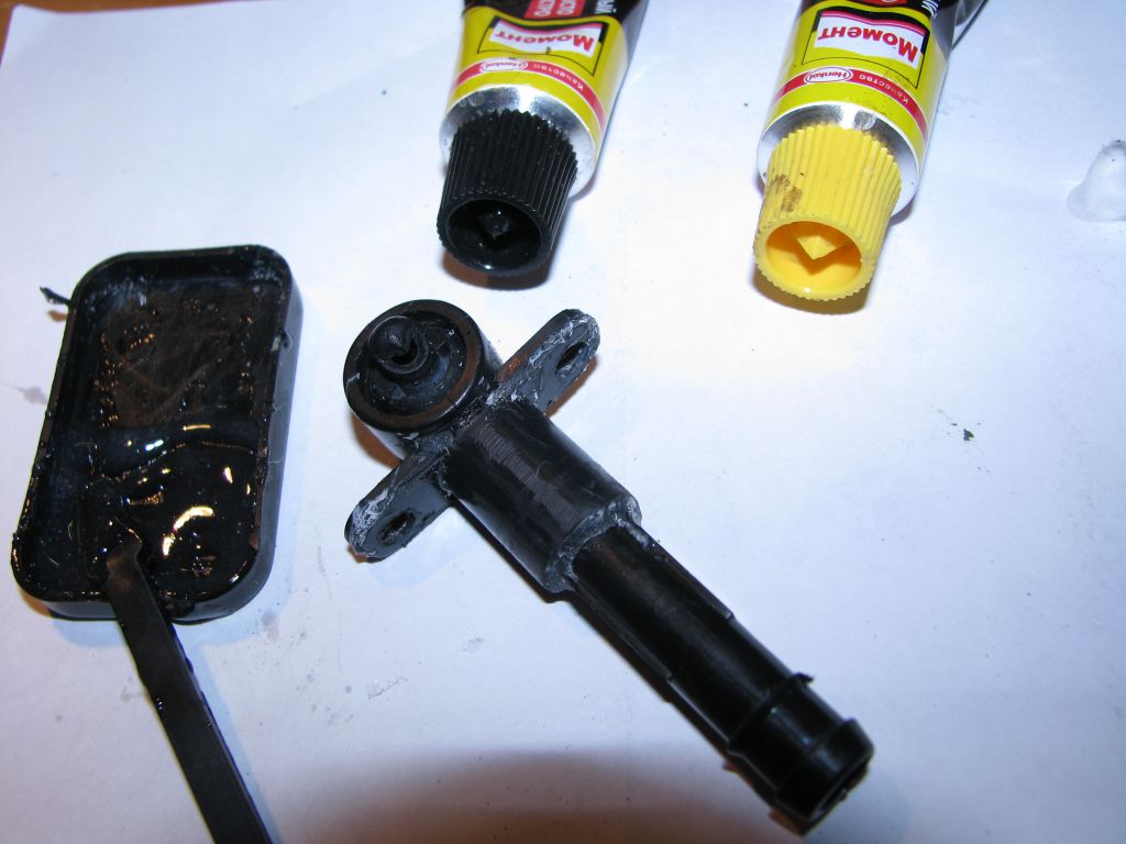 Потом на циакриновом клее собрана форсунка по месту излома: