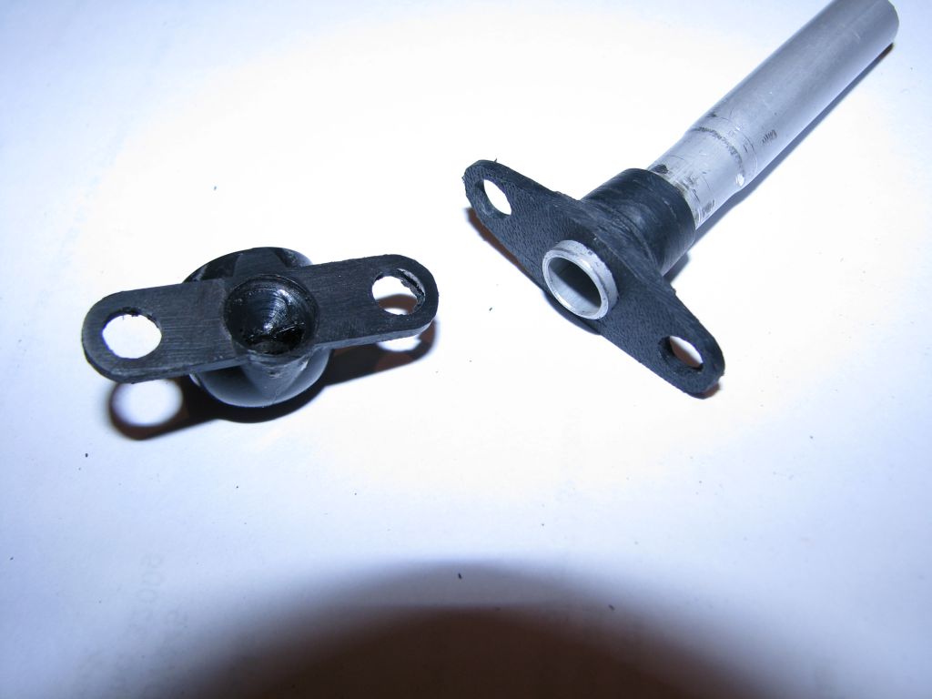 Форсунка восстановлена по-новой.  Для этого взят кусок от алюминиевой дуги палатки и листовой полистирол, собранный дихлорэтаном: