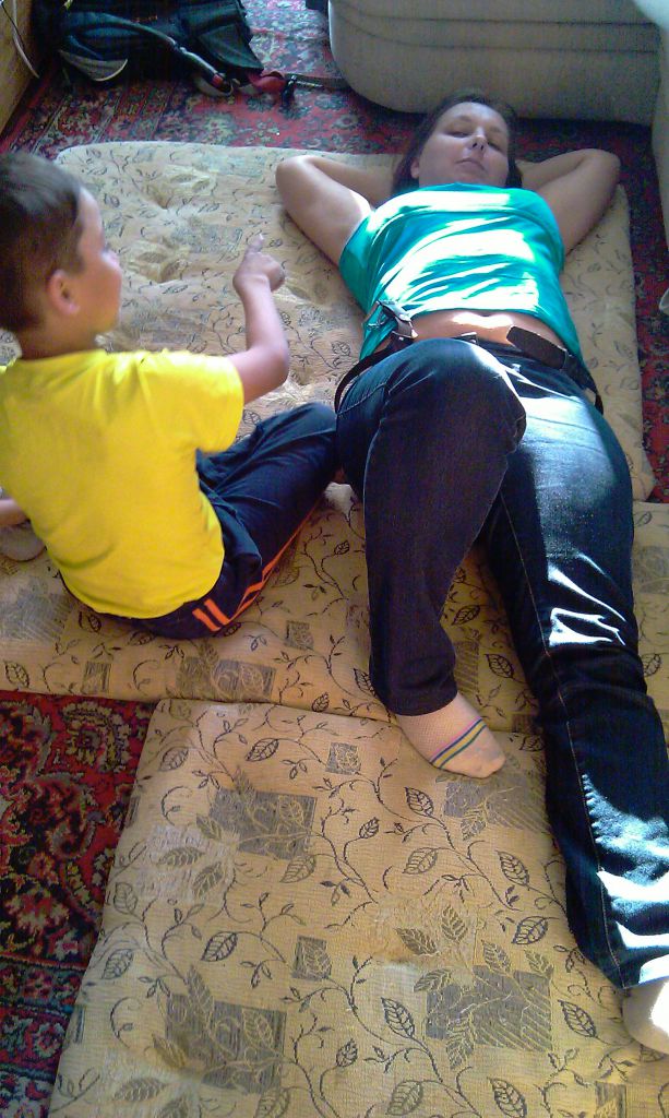 Вот помощники тестируют крышки на мягкость :) два слоя 2см синтипона - нормально, если 3 слоя сделать, будет просто замечательно.