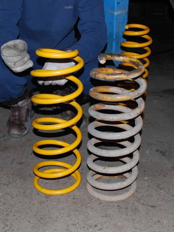задние левые пружины (визуально видно разницу и в толщине прутка и в кол-ве витков)