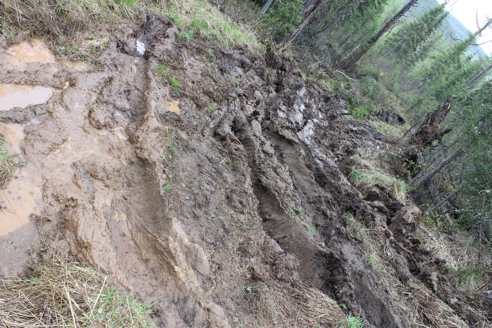 Ночью к нашей стоянке приходил Мишутка точить когти. Оставил отпечатки: