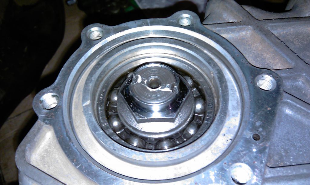 Установил новую прокладку под держатель заднего подшипника заднего выходного вала: