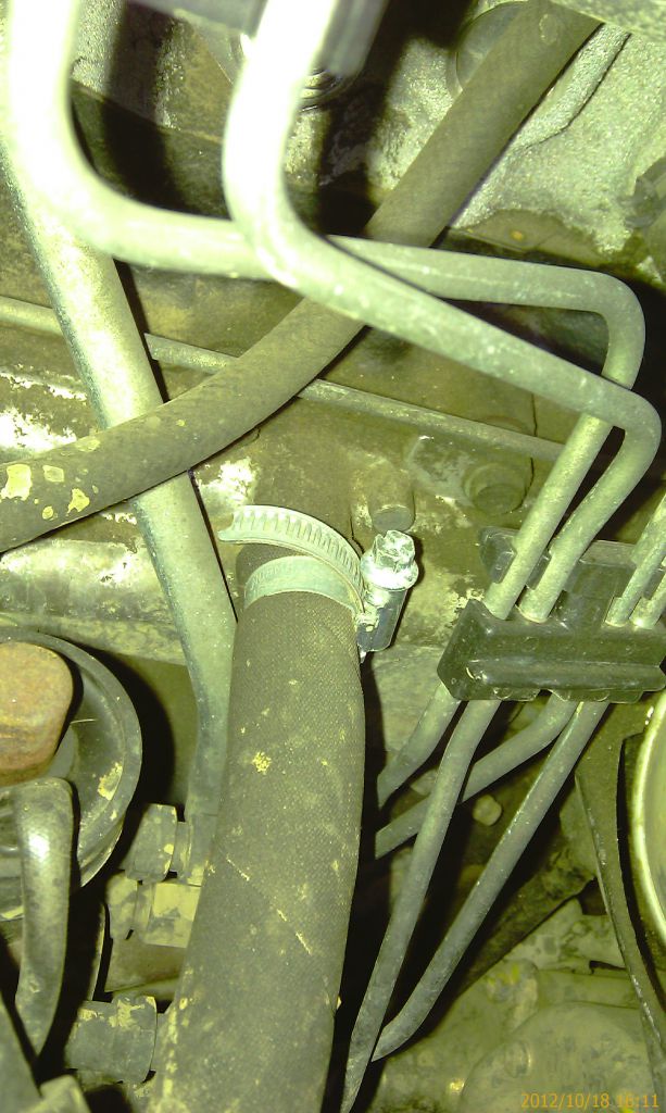 Далее вылезла проблемка с выбором точек подключения к шлангам. Забор антифриза должен производиться как можно ниже в блоке. Желательно из сливного болта. Производитель Северсов рекомендует подключаться к сливному отверстию в блоке двигателя через штуцер М10*1 (не входит в комплект поставки). На 1KZ-TE сливное отверстие выполнено в виде краника, где болт  М10*1 перекрывает боковой отвод:
