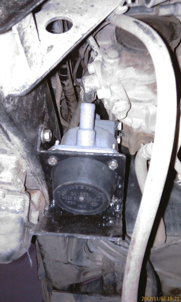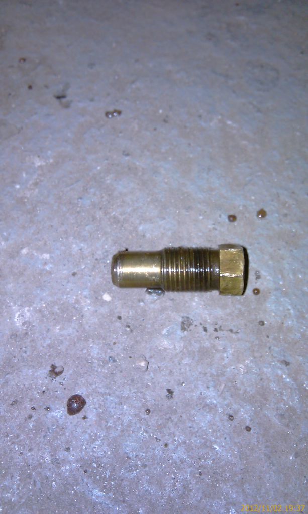 При начале монтажа выяснилось, что нихрена не получится. Во-первых, штуцер стоит наклонно и не помещается в габариты. Цепляется за обвес двигателя. Во-вторых, выкрученный болт крана выглядит вот так: