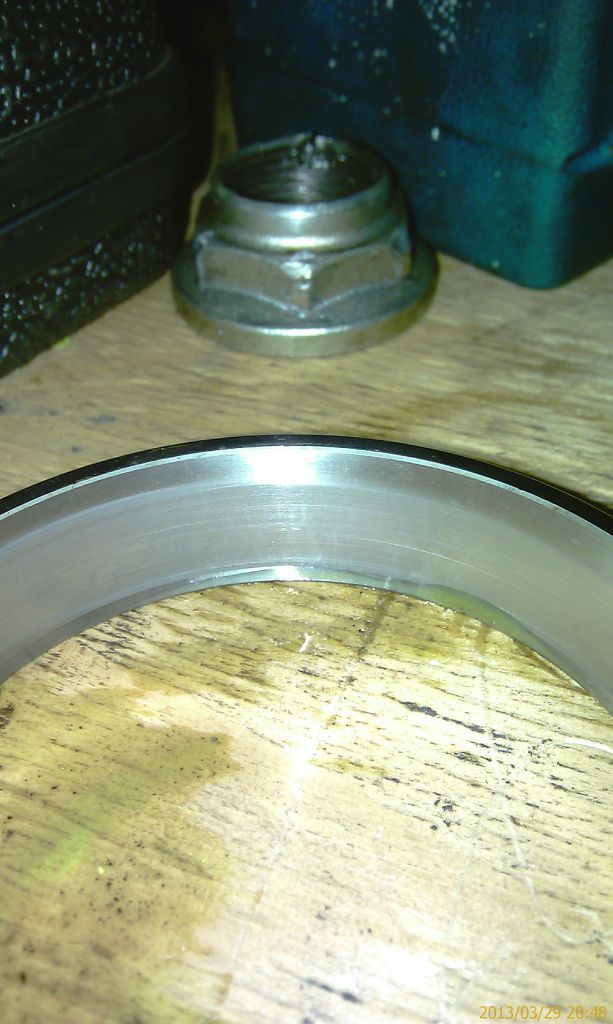 Старая маслоотражающая шайба, естественно, на новый пиньон не обулась. Нет ничего более возбуждающего, чем раздраконивание отверстия в каленой японской шайбе китайским напильником. Хорошо, что у меня в машине нашелся американский напильник для цепи бензопилы.