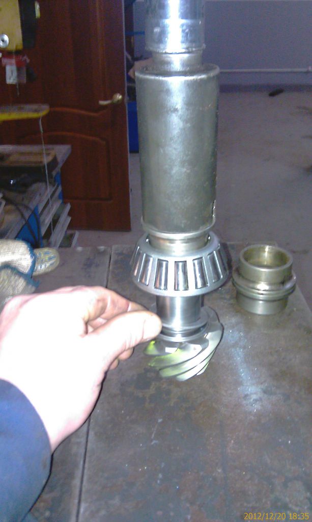 Разобрал, поставил втулку, собрал ведущую шестерню, отрегулировал преднатяг, закернил гайку: