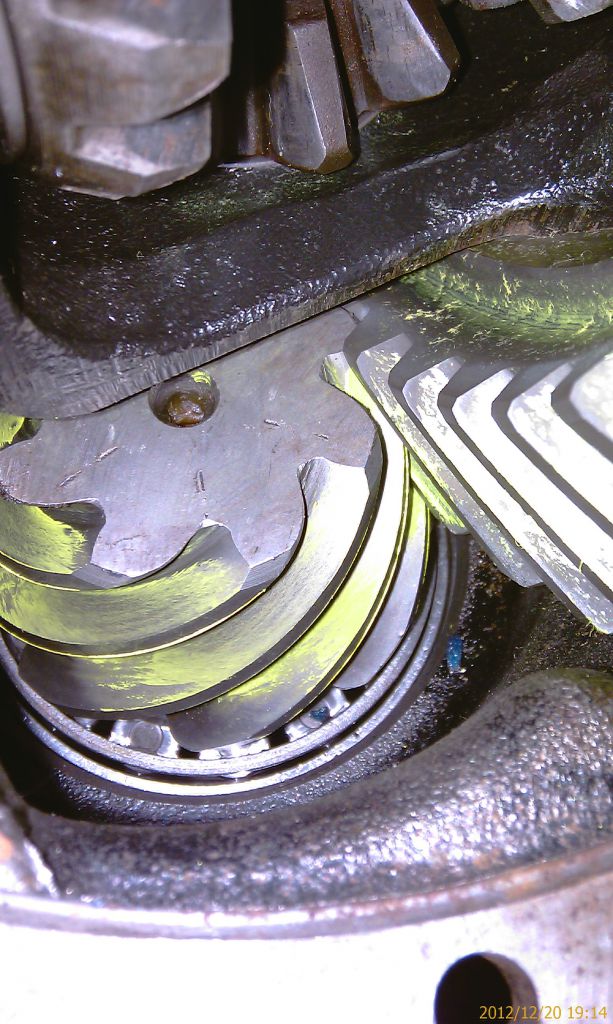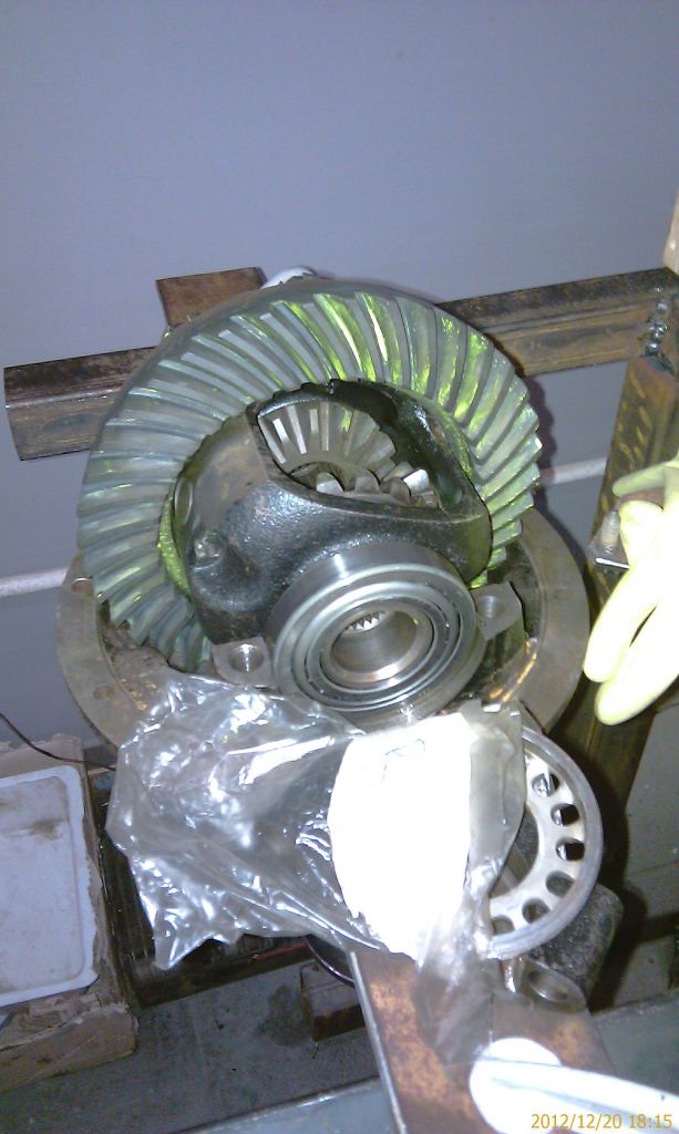 Надеваю на опорные подшипники внешние обоймы, загружаю дифференциал так, чтобы при еле ощутимом движении шестерни простукивался небольшой зазор между шестернями: