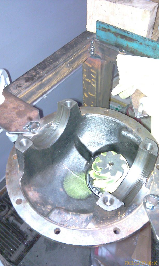 Итак, продолжаю. Пиньон установил в корпус редуктора без распорной втулки, маслоотражающей шайбы и сальника. Гайку затянул до получения необходимого преднатяга: