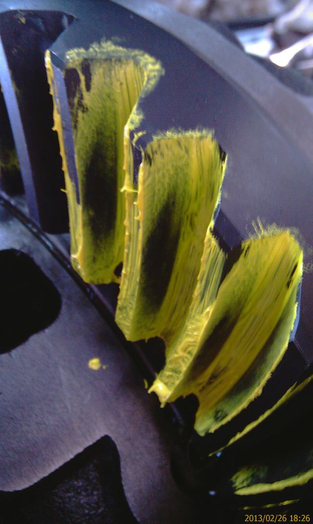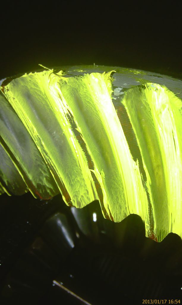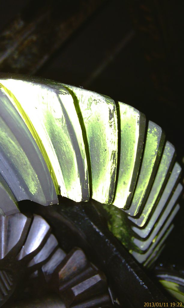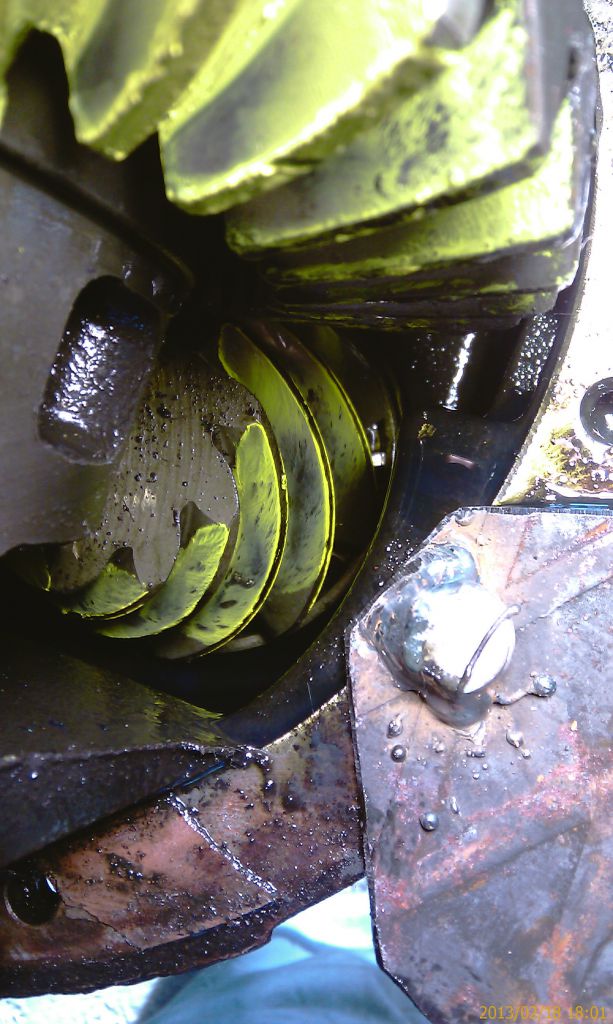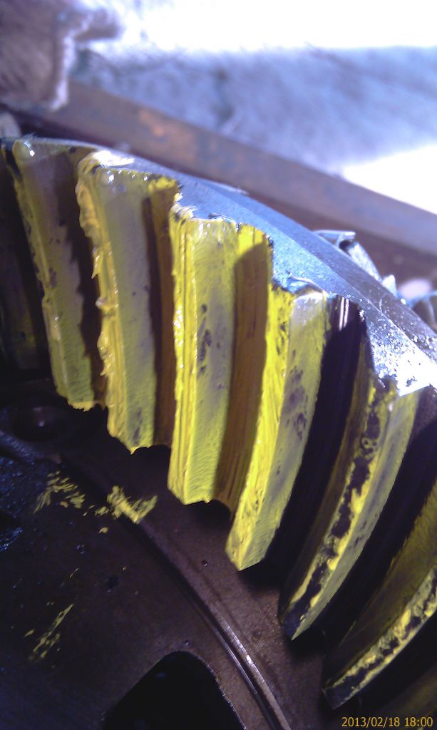 Удерживая через тряпку фланец пиньона, кручу несколько раз взад-вперед ведущую шестерню. Ну и вижу пятно.