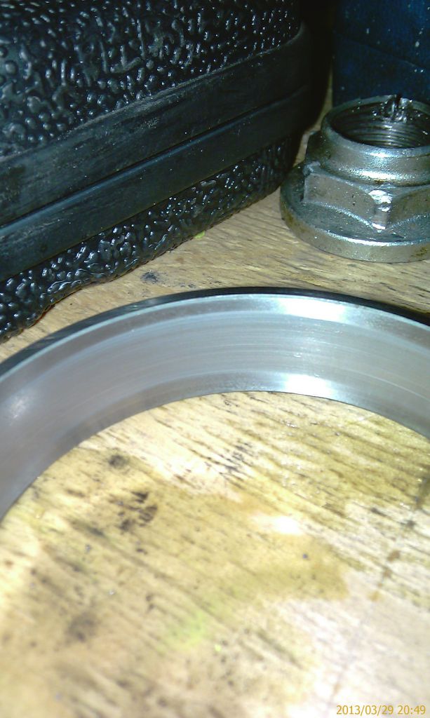 Старая маслоотражающая шайба, естественно, на новый пиньон не обулась. Нет ничего более возбуждающего, чем раздраконивание отверстия в каленой японской шайбе китайским напильником. Хорошо, что у меня в машине нашелся американский напильник для цепи бензопилы.