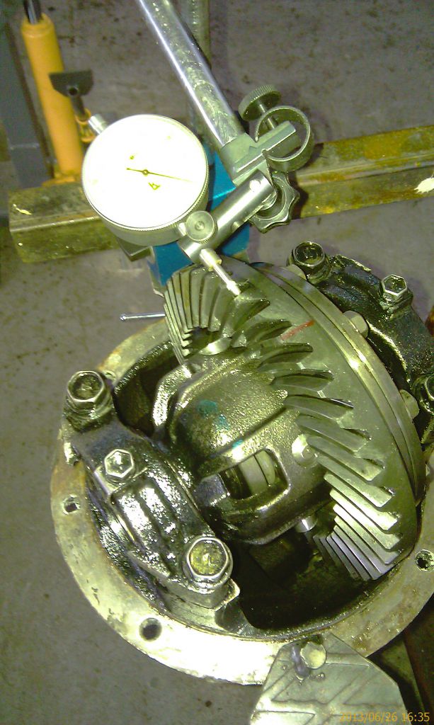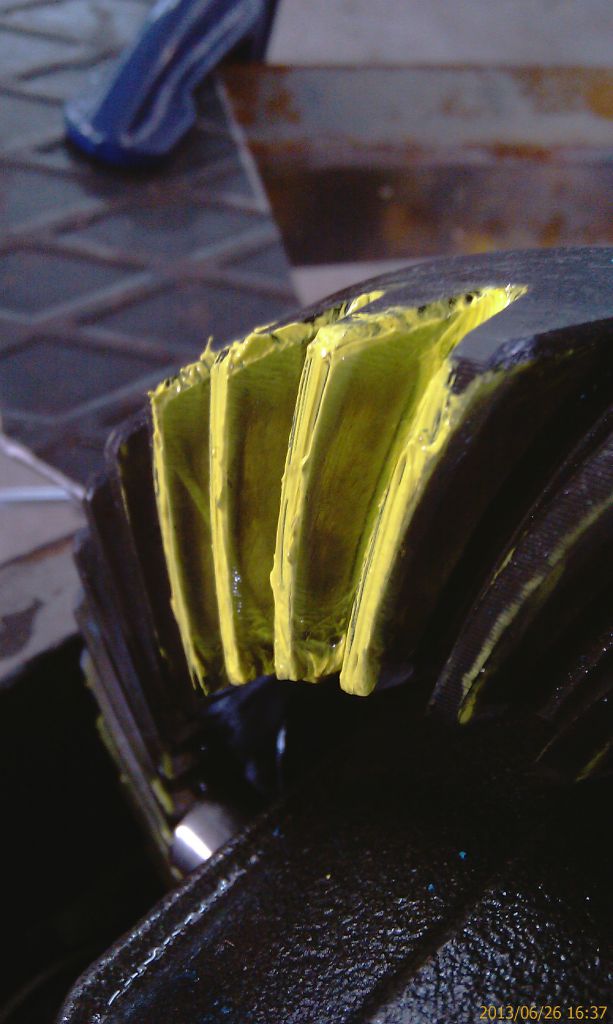 Взялся разбирать. Зазор в ГП в норме. Пятно контакта указывает на слишком глубокую установку пиньона. Ну и нет никакого люфта на хвостовике! Подшипники все в норме.