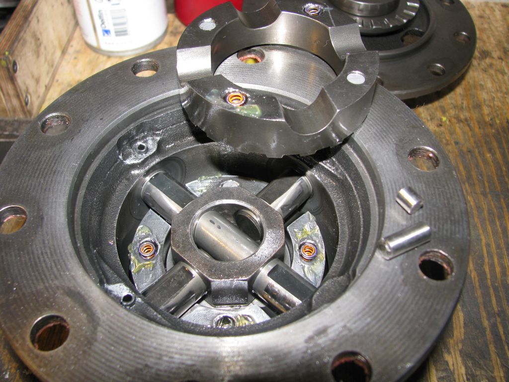 Поэтому оси поставлены "как было", то есть длинная, не разрезная ось, установлена в углубления с меньшим износом. В конце концов, если даже выработка будет влиять, то пусть самоблок работает как двухсателлитный %)