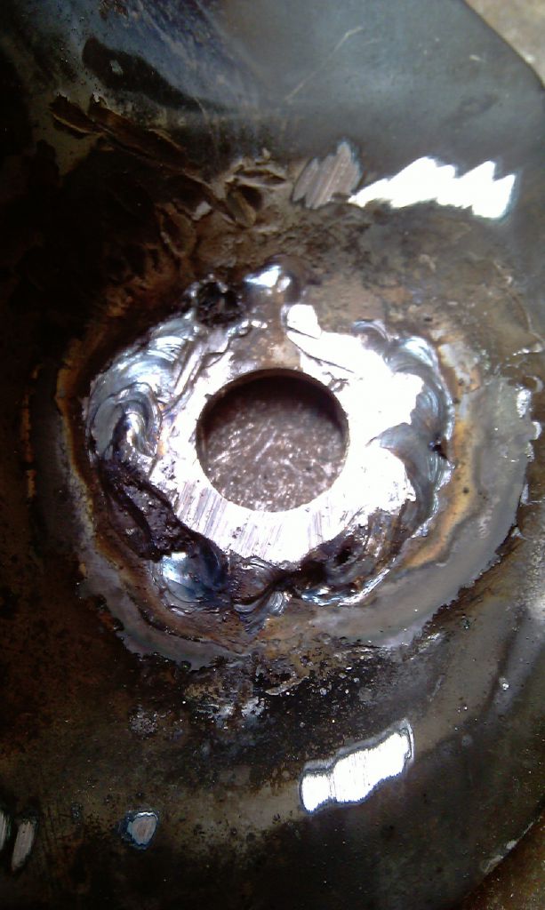 Прикинул, что максимально для 35" перемещение на 15 – 2- мм. Переварил площадку левее. Все сваркой испоганил. Площадка стала на 80% состоять из электродов