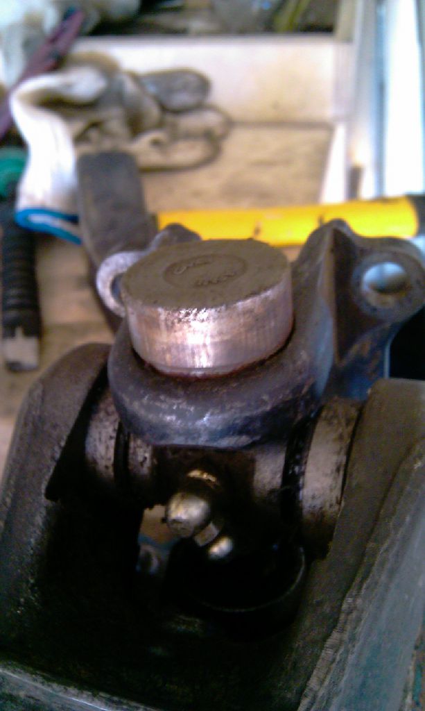 Фланец снимается. Теперь аналогично предыдущим операциям, упирая крестовину в тиски, выбиваем чашки из ушей самого кардана: