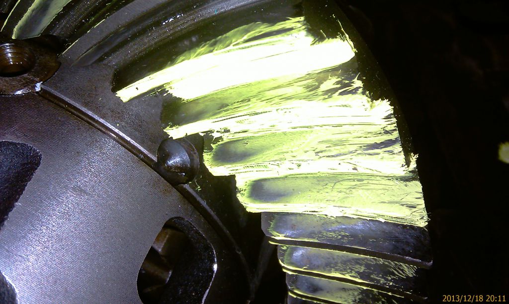 Алексей, ошибочка в регулировке. Пятно не в том месте. Я бы попробовал 1.8, 1.85. Из-за этого и гул. А пара нормальная. Если бы был износ, то прямое и обратное пятно были бы в разных местах.