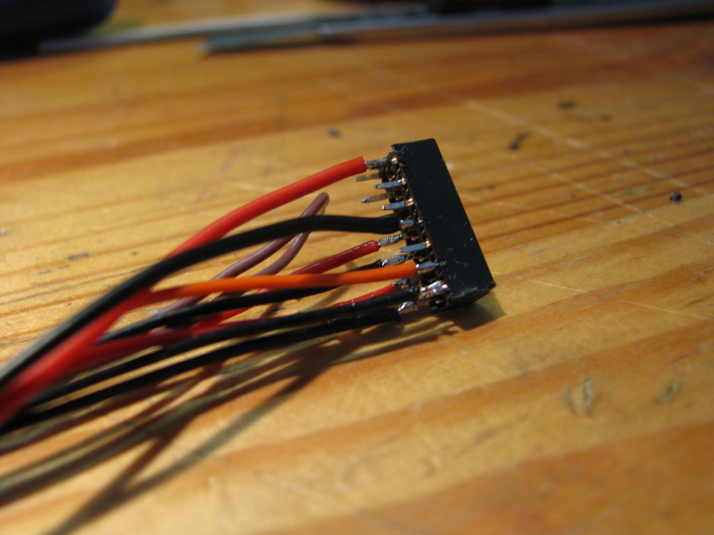 Три круга по радиолавкам Иркутска дали небольшой результат: среди гор разъемов с шагом 2,54мм найдена планка-гнездо 2 ряда с шагом 2 мм. Из нее накромсал необходимых разъемов и собрал кабели:
