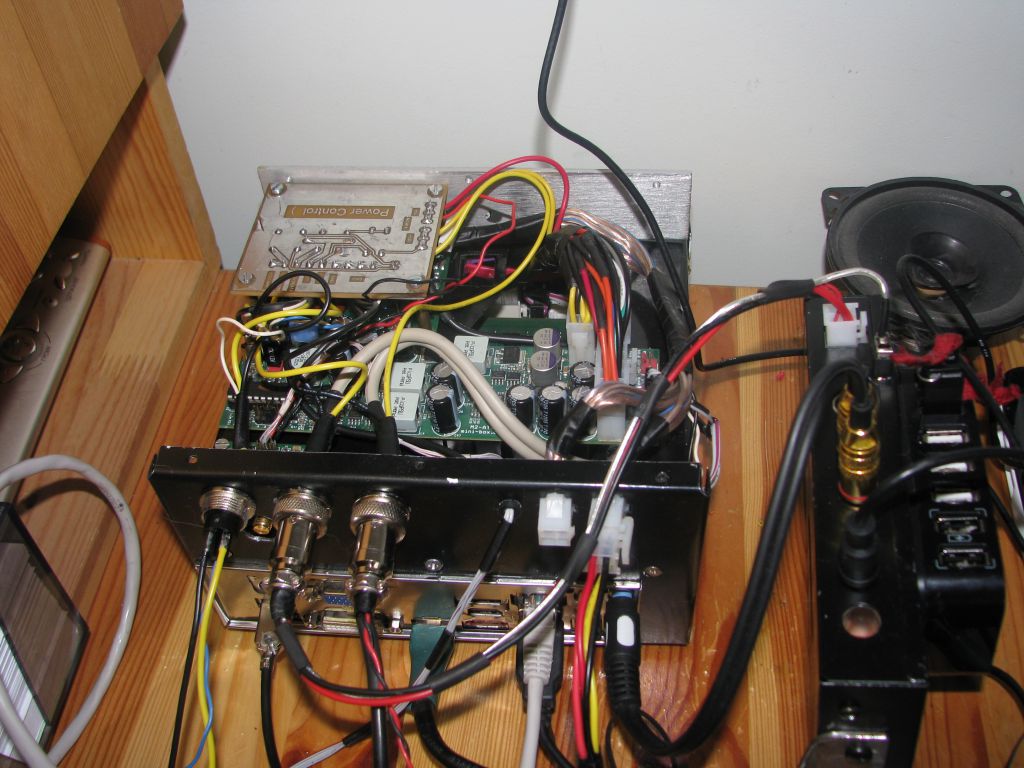 На этой плате только один COM-порт, поэтому пришлось управление HD Radio и touchscreen переводить на USB. Для HD Radio пришлось сделать USB-COM конвертер, который поселился прямо в корпусе HD Radio: