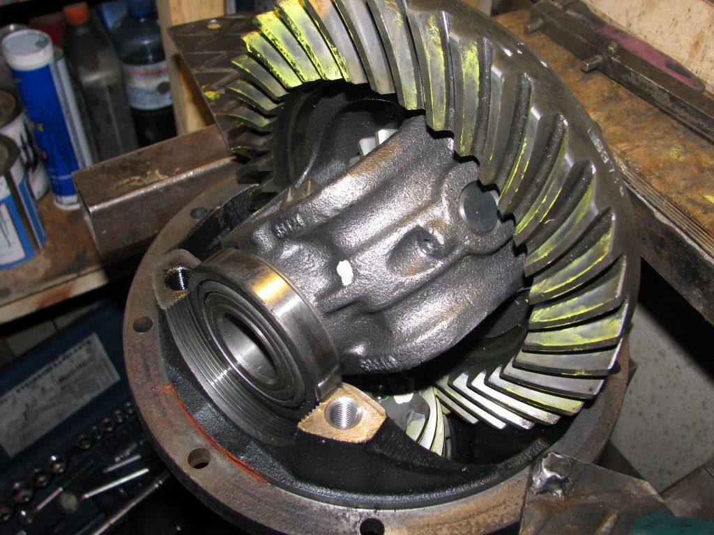 По ходу выявил небольшой радиальный люфт пиньона. Двукратной заменой специальных шайб, подобрал ту, которая дала идеальный преднатяг: