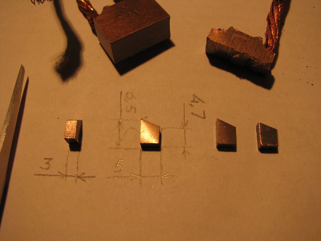 Кстати, для информации: в Бензоэлектромаркете малюсенькие медно-графитовые щетки от какой-нибудь Макиты стоят около 300р. за пару. Стартерная щетка от русского грузовика, из которой выходит 8 заготовок, стоит 15р. :mosking:
