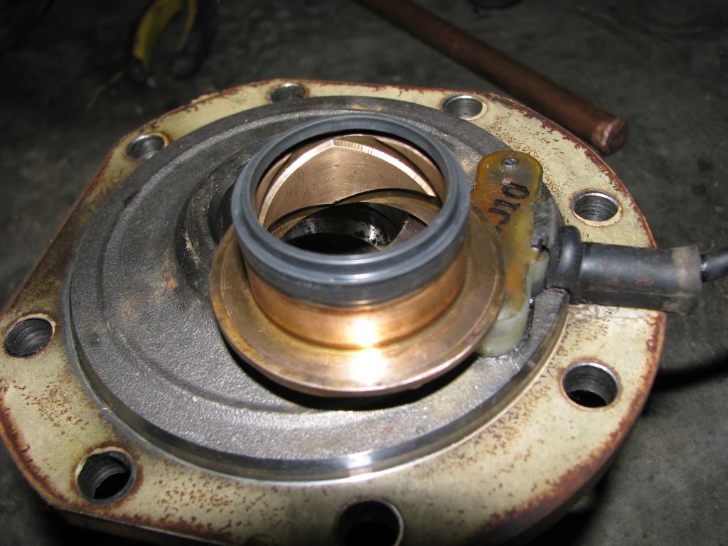 Тем не менее их пришлось выпрессовывать, потому что на внутреннюю часть втулки надет требующий замены сальничек, который является единственной преградой шрусевой смазке, пытающейся залезть в электрхаб через зазор между осью цапфы и осью гранаты: