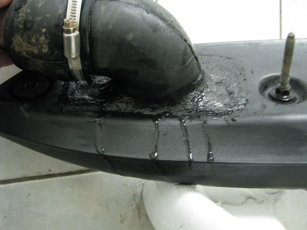 И влил в него еще ведро воды. Результат не заставил себя ждать. Вода ручьем потекла из участка между горизонтальным элементом шноркеля и входом в кастрюлю. Снаружи :wacko2: :