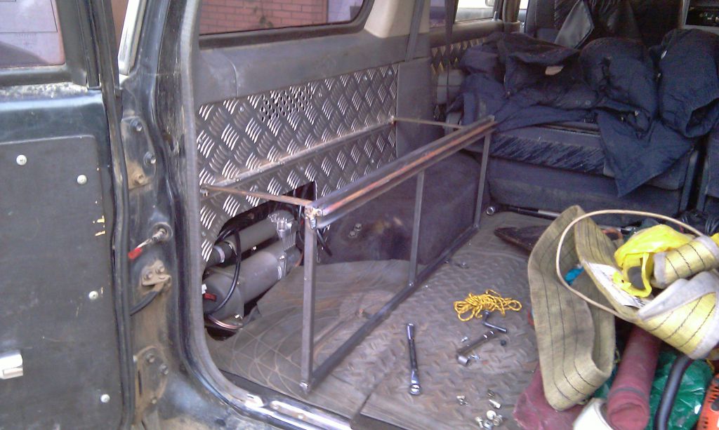 В левой нише вместо кронштейна штатного домкрата влепил компрессор Беркут R20.