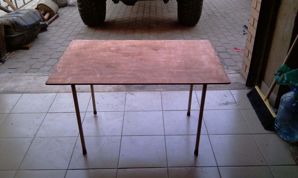 а если фанерку покрыть эпоксидкой ну или полиэфиркой (кому как удобнее - получается более износоустойчиво и экологично чем ламинированная фенольная строительная фанера  (не в обиду никому)) то сносу ей не будет и не липнет ничего и вытирается тряпочкой а еще под смолу можно какой нибудь текст на бумажке вклеить или карту или доску шахматную.