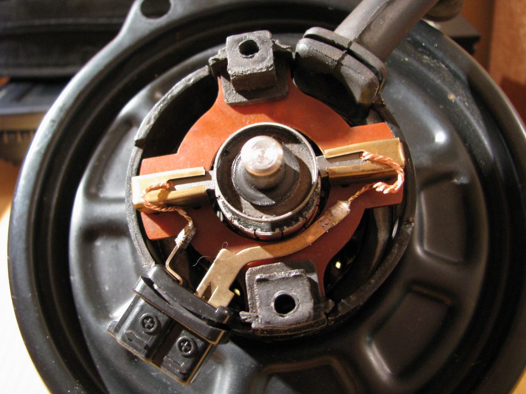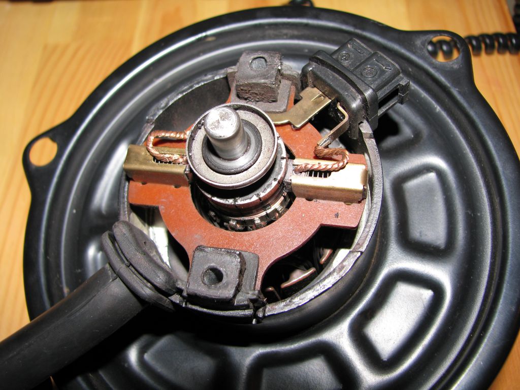 Полтора года спустя история повторилась. Кроме того печкин мотор стал сильно шуметь. А еще показалось, что если в зиму на прогреве оставлять машину со включенным вентилятором, то махом садится аккумулятор. То есть на моторе отопителя непотребное потребление электричества %) . Кроме того щетки сильно сыпятся. Видимо пара коллектор – щетка совсем не удалась :wall: . Мотор временами стал запускаться с толкача, от удара с ноги по корпусу :punish: .